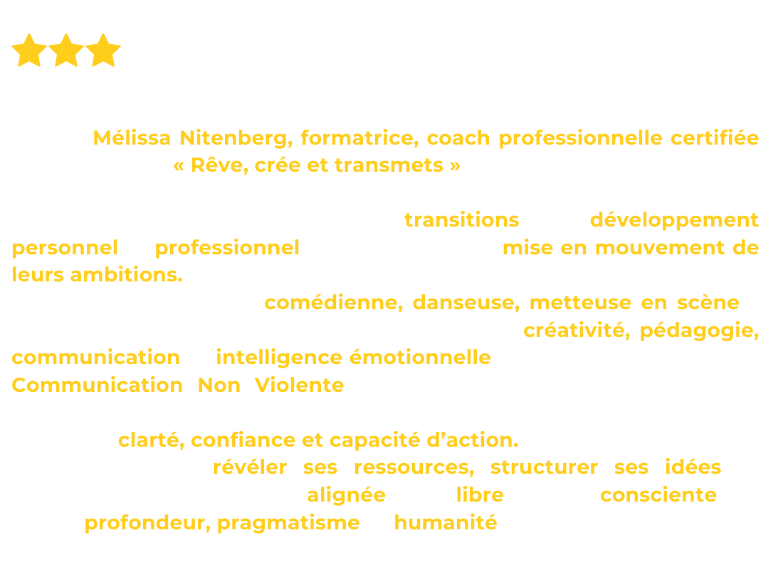 Ma mission est d'apporter au monde cette expérience sensible, humaine et transformative, pour que chacune puisse s'exprimer dans sa vérité. C’est ce que je défends dans toutes mes offres avec le fameux “YOU FIRST” : nourris-toi d’abord, aligne-toi, et tu pourras ensuite inspirer et transmettre autour de toi.